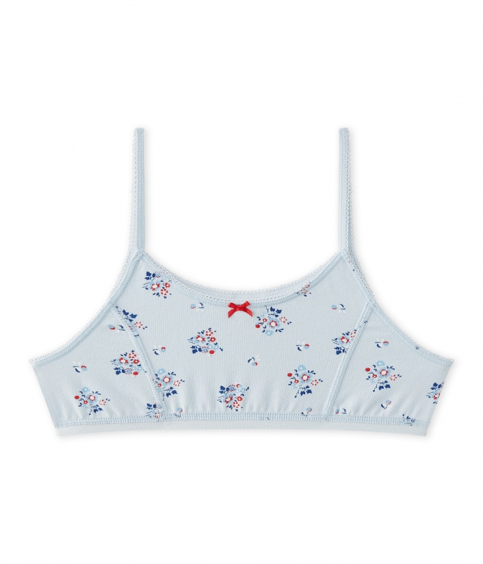 Бюстгальтер з підкладкою, має привабливий квітковий малюнок. Модну і делікатну нижню білизну зроблено з ідеальної тканини для першого бюстгальтера.