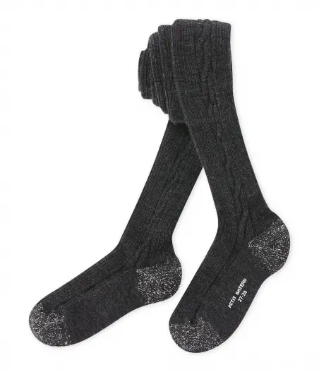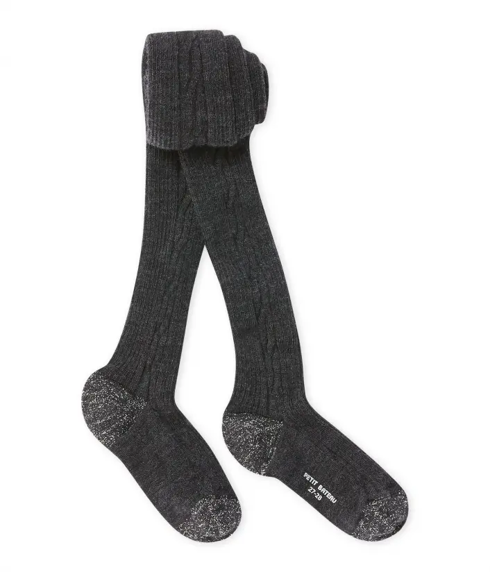 Ці колготки для дівчинки зроблені з теплої суміші вовни, прикрашені плетінням збоку, мають стильні пальчики та п'яточки у золотистому люрексі. Вовняні колготки для дівчинки, ідеально підходять для зими!