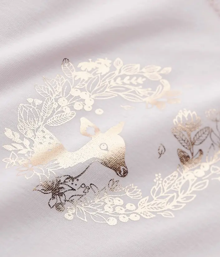Пижама для девочек, изготовленная из 100% хлопка. Состоит пижама из футболки и брюк. Футболка декорирована невероятно красивым рисунком. Пижама доступна в двух цветах. Эта пижама идеально подходит для начала сезона.
