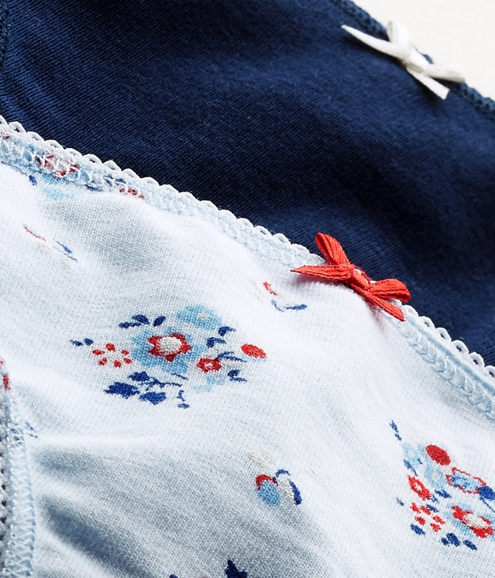 Чудовий комплект трусиків для дівчинки. Одні трусики мають однорідне забарвлення, інші - з квітами.