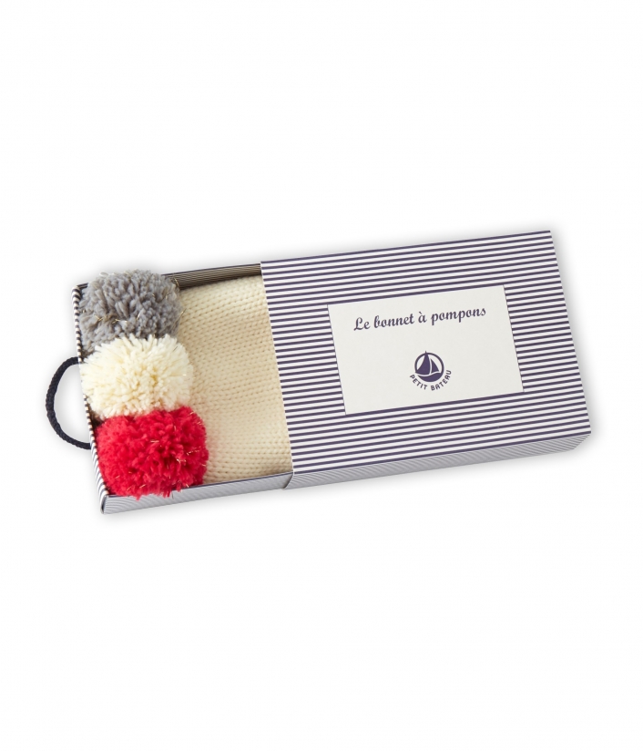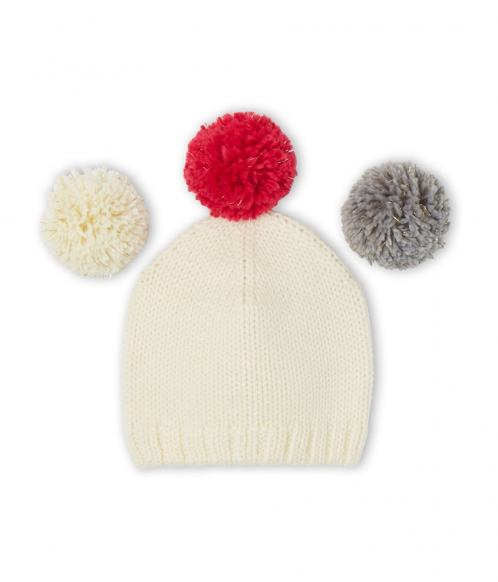 Один шапка, три помпоны, три решения! Petit Bateau предлагает хороший подарок для девочек! Три переменных помпоны разных цветов могут использоваться к любому наряду. Идеальный зимний аксессуар и отличная идея подарка для маленьких девочек!