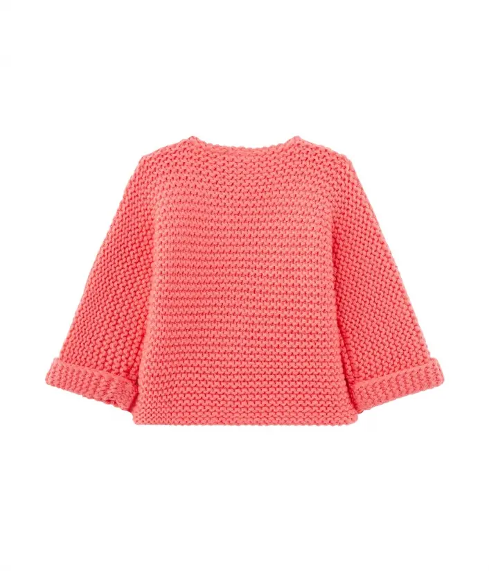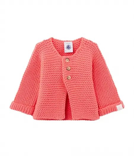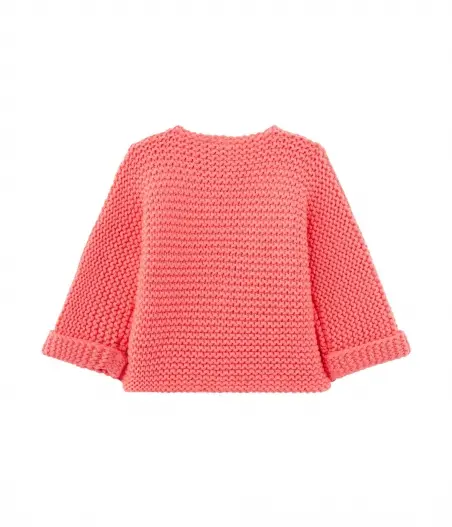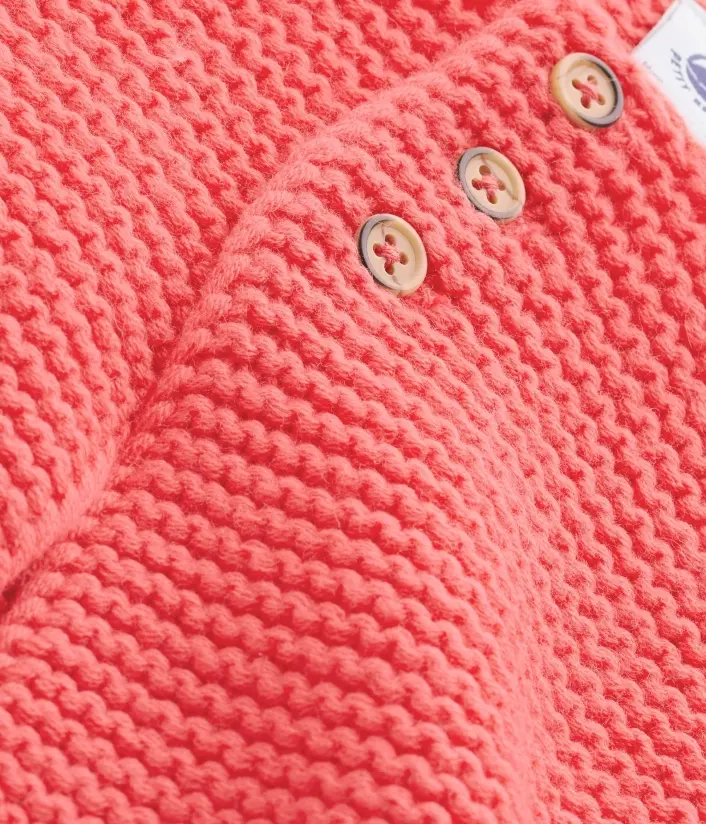 Цей дитячий кардиган є основним елементом гардеробу. Дитячий кардиган має відмітну форму "T", без плечових швів, призначених для комфорту новонародженого. Цей універсальний кардиган незамінний!