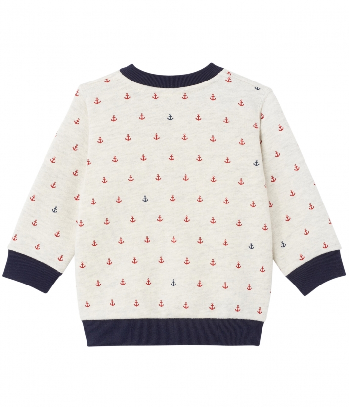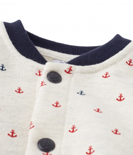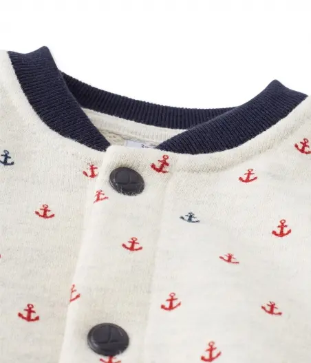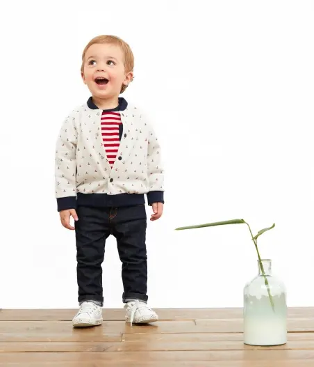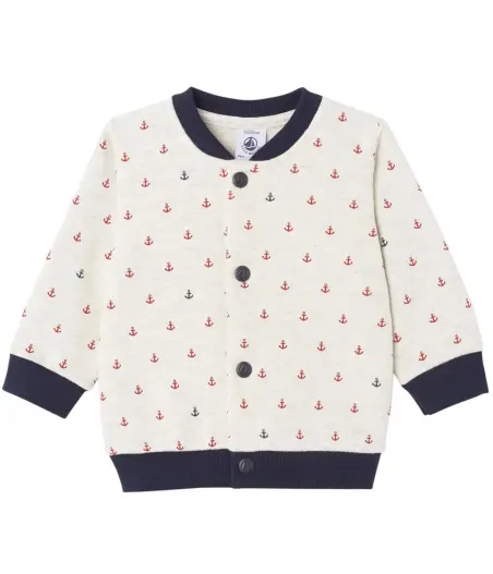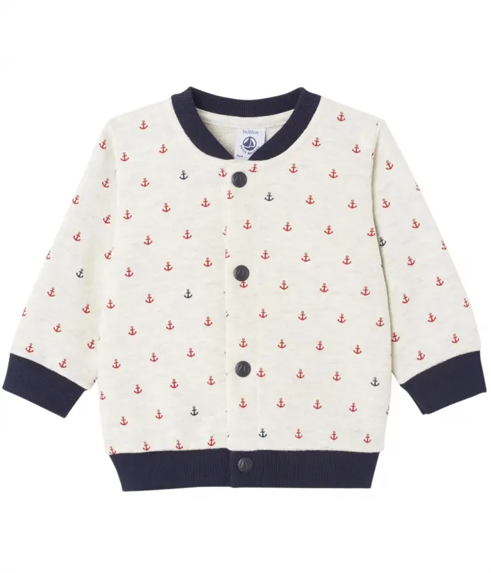 Теплий кардиган з круглим вирізом і застібкою на кнопках для хлопчика. Виготовлений з м'якої бавовняної тканини з елегантним принтом. Склад: 100% бавовна.