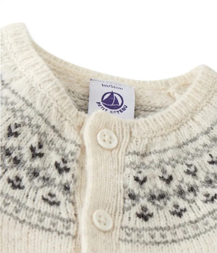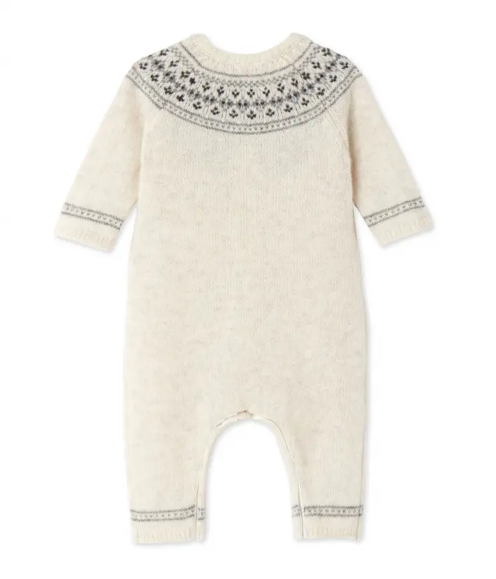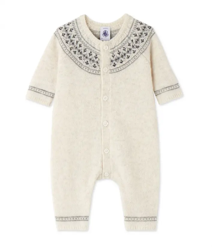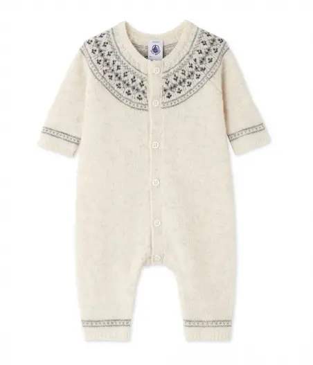 Цей дитячий комбінезон з вовни, нейлона і альпаки, підкреслений гарним жаккардом навколо декольте і жакардними акцентами на рукавах та ногах. Комбінований дитячий комбінезон ідеально підходить для зимового одягу.