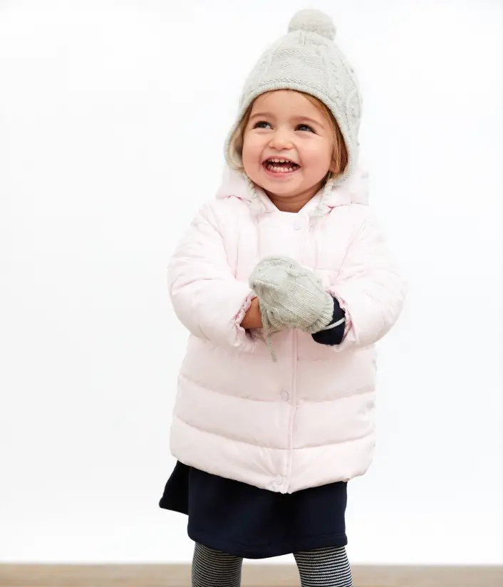 Куртка для девочки с капюшоном легко носится и идеально подходит для повседневной носки. Детская куртка имеет объем и форму, предназначенную для младенцев, с длиной до колена и эластичными манжетами на запястьях.