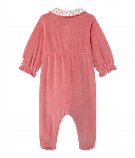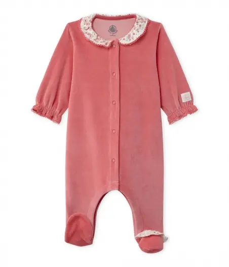 Ви сможете встояти перед чарівною піжамою для дівчат, яка виконана з бавовняного велюру, який м'який на відчуття. Піжама декорована чудовими деталями: комірцем в стилі Пітера Пена, який прикрашений чарівним квітковим принтом. Піжама має зручні застібки між ніжками для швидкого та зручного переодягання. Тепла та чарівна піжама для маленьких дівчат. Ідеальний подарунок для новонароджених. Матеріал: 80% бавовна, 20% поліестер