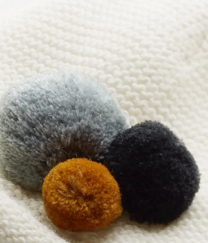 Чарівна тепла шапочка - ідеальний аксесуар для холодної погоди. Виготовлена з вовни та акрилу, прикрашена різнокольоровими помпонами. Склад: 58% вовна, 50% акрил / 100% поліестер.