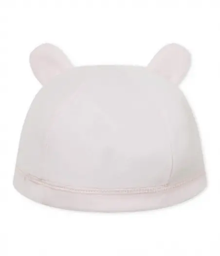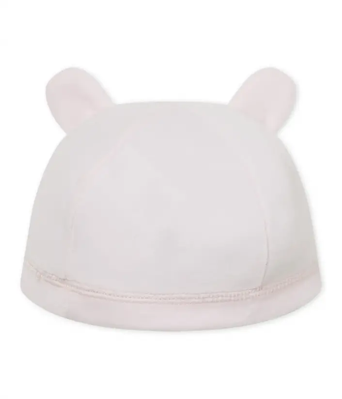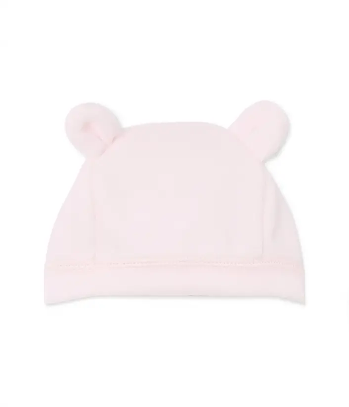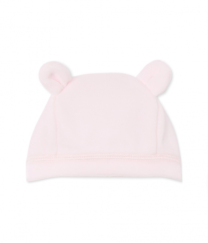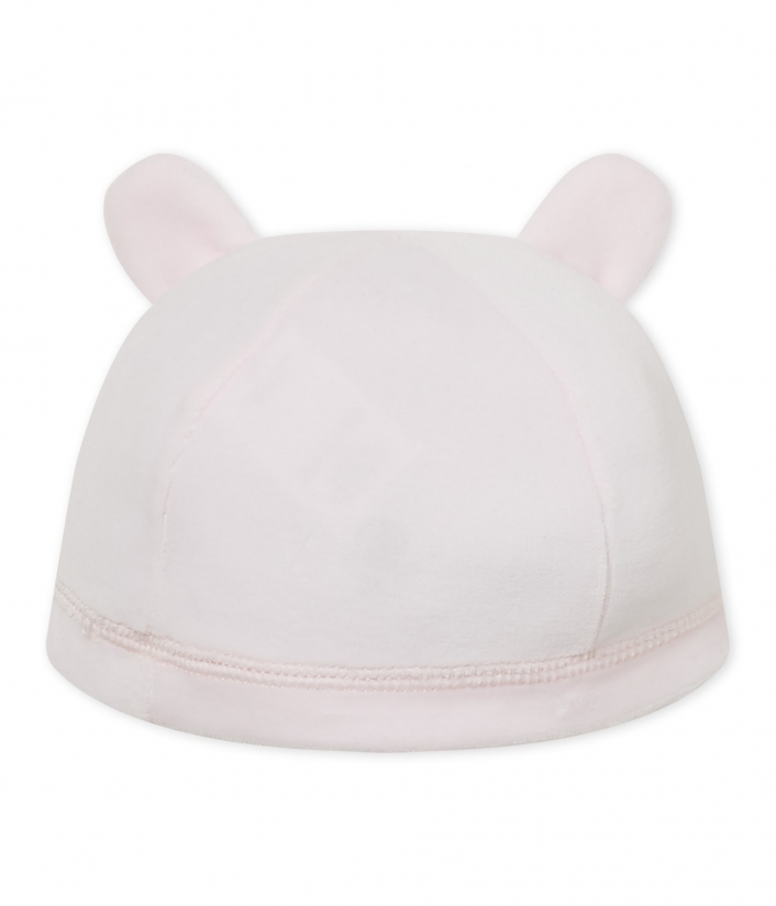Универсальная шапка для новорожденных создана из хлопкового велюра. Это важный аксессуар для того, чтобы в первые недели удерживать голову ребенка в тепле.