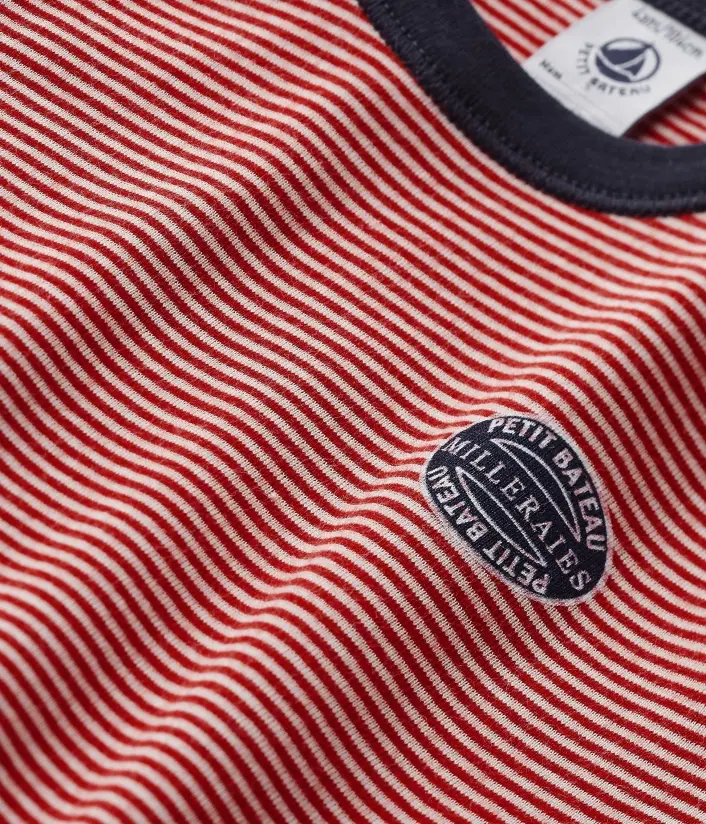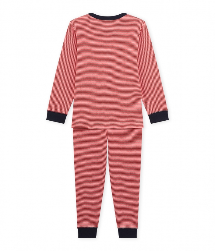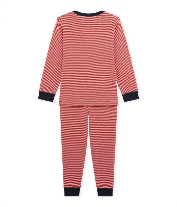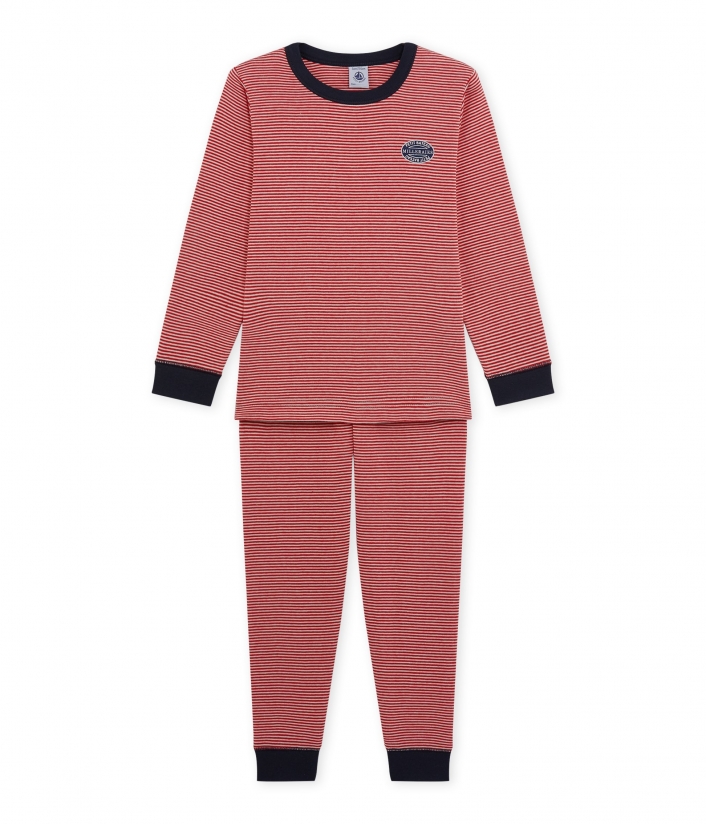 Вы не сможете устоять перед этой замечательной пижамой для мальчиков. Изготовлена пижама из 100% хлопка. Футболка и брюки украшены традиционными полосками Patit Bateau. Пижама представлена в двух цветах.