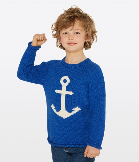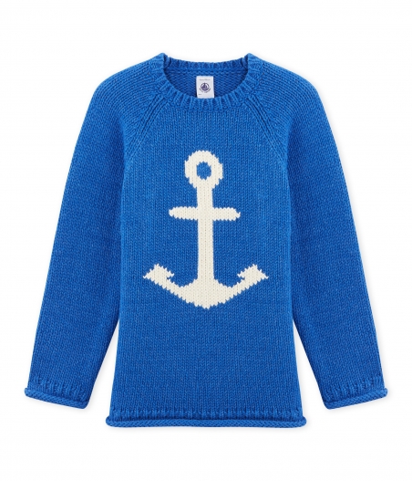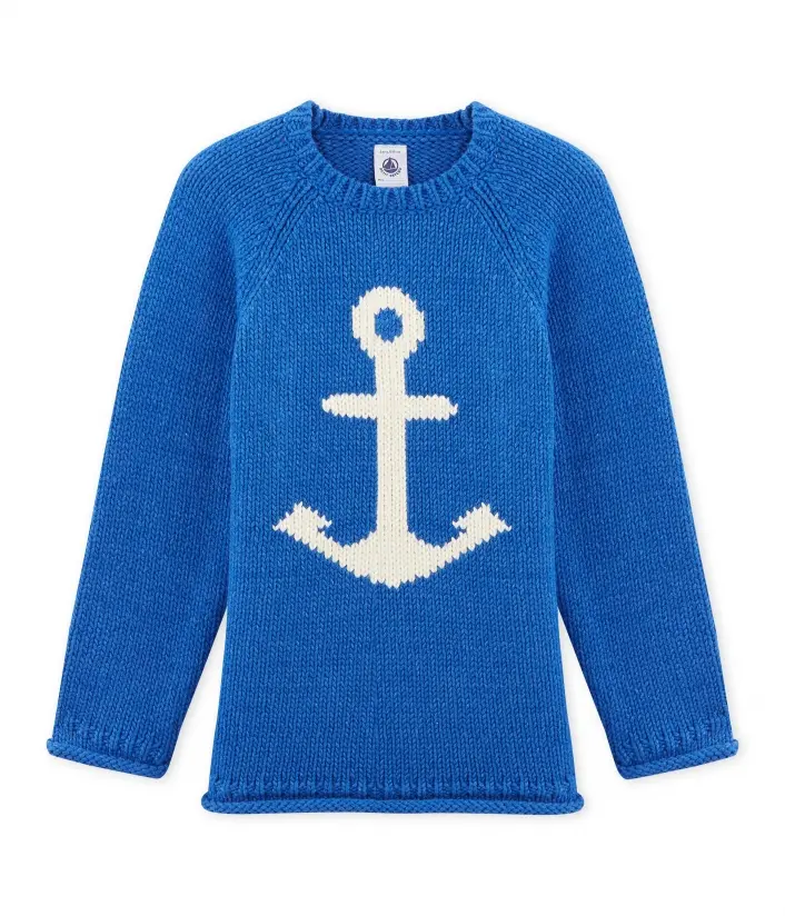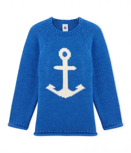 Хлопчачий в'язаний светр з круглою горловиною в морському стилі. Склад: 59% бавовна, 41% акрил