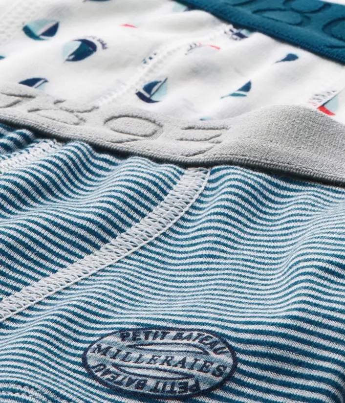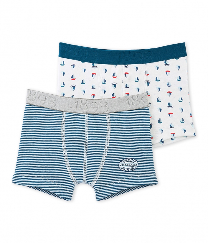 Набор из двух боксеров для мальчика: одни боксеры изготовлены из ткани в мелкую полоску, другие - с изображением корабликов. Обратите внимание на удобный эластичный пояс. Материал: 100% хлопок.