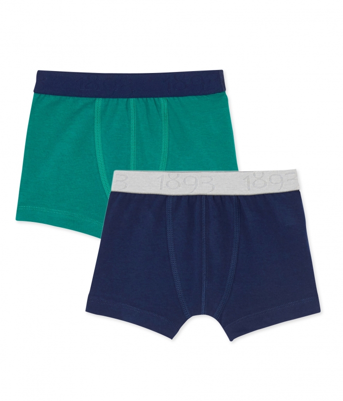Набір з двох боксерів для хлопчика, які виготовлені з м'якого однобарвного трикотажу. Зверніть увагу на еластичний пояс. Матеріал: 93% бавовна, 7% еластан.