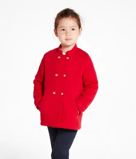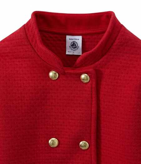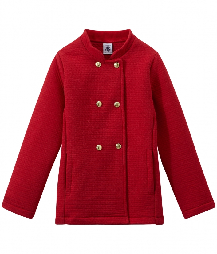 Пальто виготовлено зі стьобаного подвійного трикотажу, декоровано гарними золотими гудзиками з логотипом Petit Bateau. Це пальто ідеально підійде для особливих подій у житті дівчини.