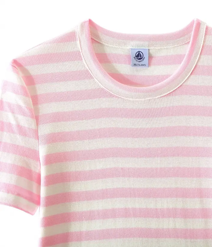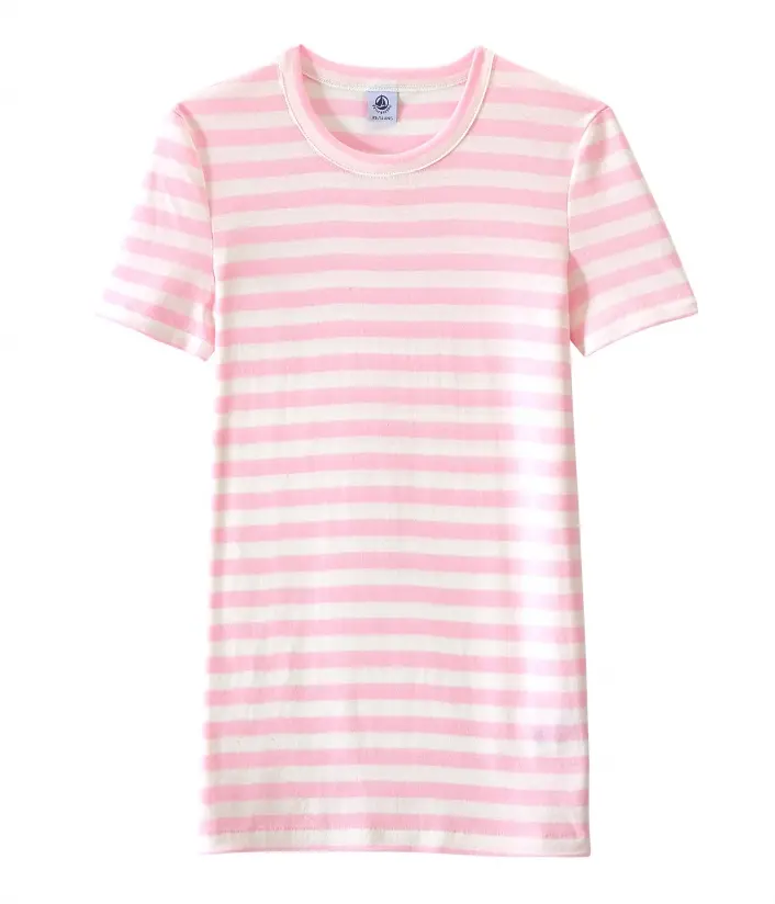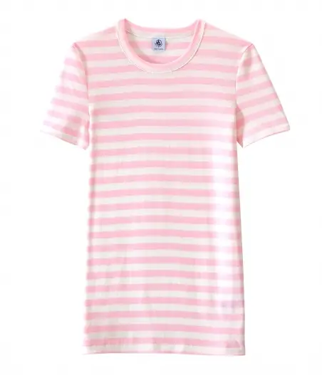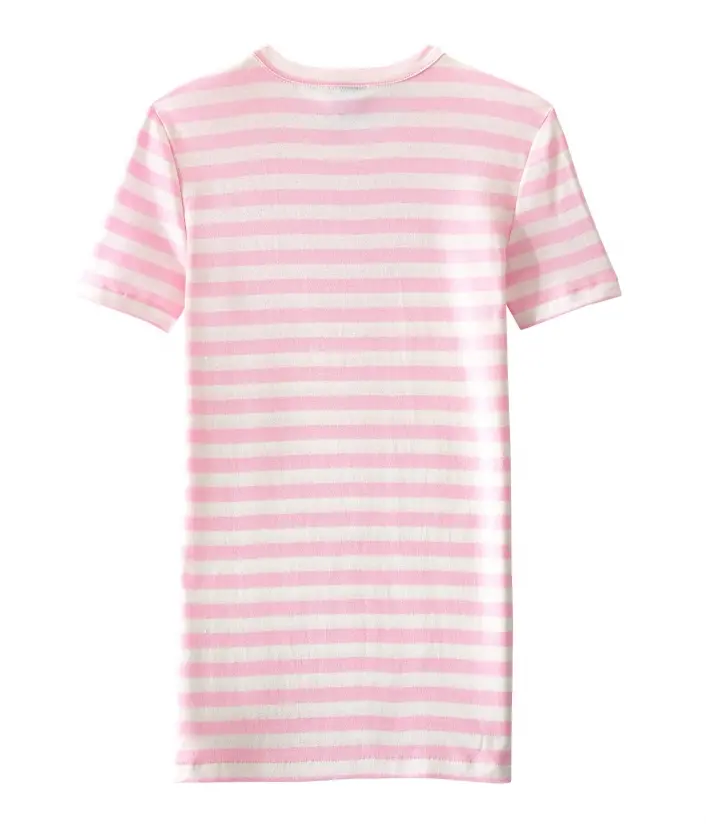 Ультрамодна жіноча футболка рожево-молочного кольору в смужку. Незамінна річ для літа. Склад: 100% бавовна.