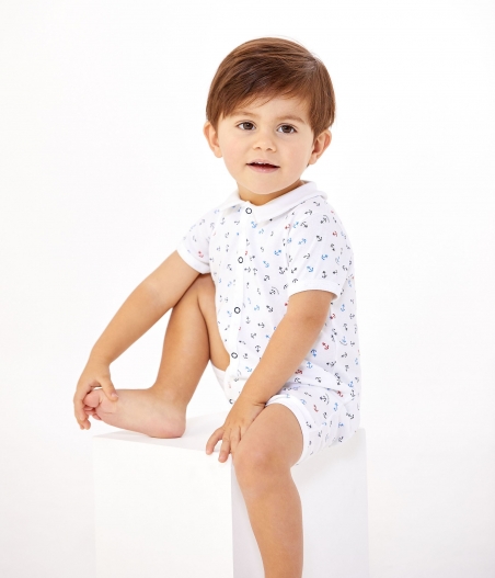 Комбінезон з принтом якорів та милим комірцем. Чарівний дитячий комбінезон, ідеальний для літа! Склад: 100% бавовна.
