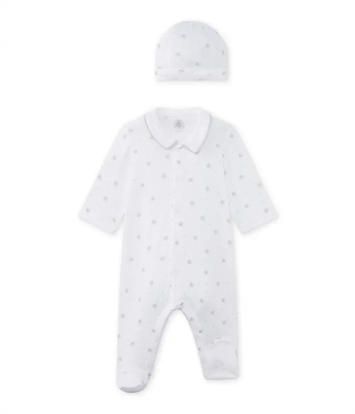 Чарівний набір для немовлят складається з комбінезона та шапочки. Набір виготовлений з м'якого та комфортного трикотажу. Тканина прикрашена чарівним зірковим принтом. Комбінезон має зручні застібки між ніжками. Склад: 100% бавовна