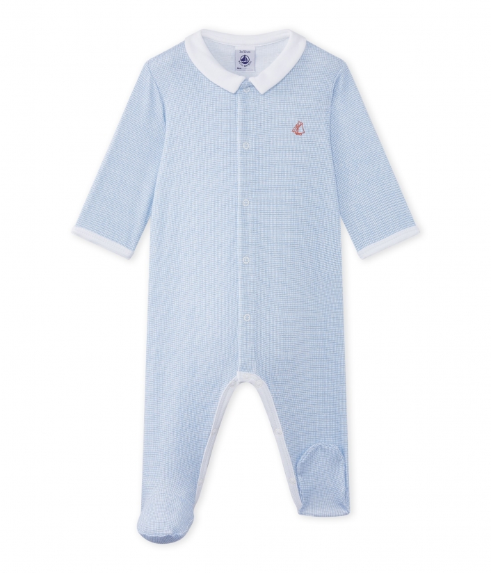 Піжама для хлопчика у клітинку. Принт з вітрильником виглядає оригінально. А комірець надає чарівності. Піжама від Petit Bateau не тільки приваблива, але й практична. Склад: 100% бавовна.