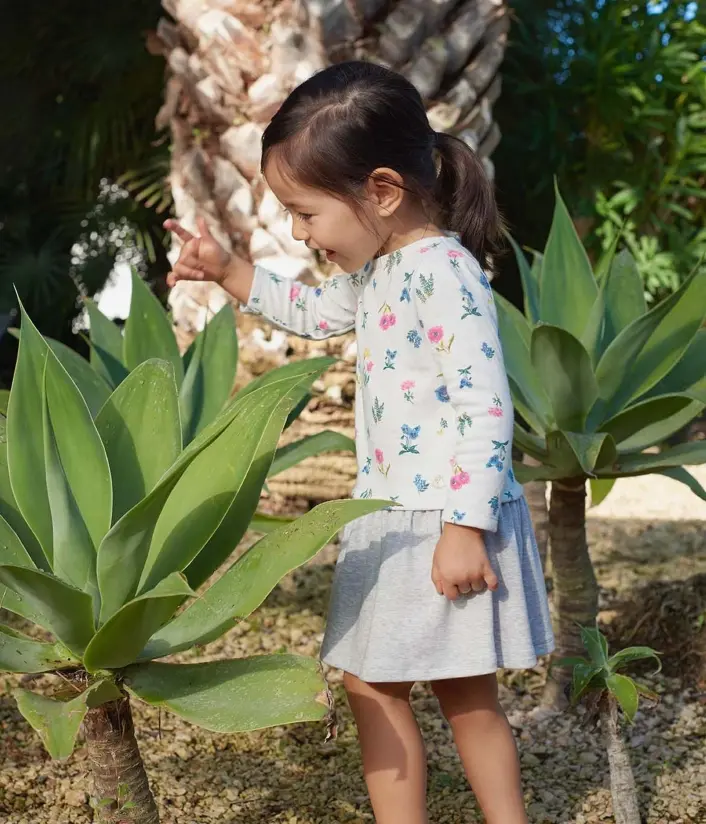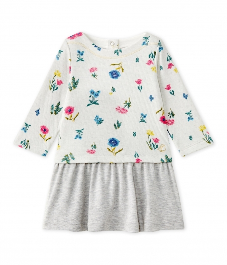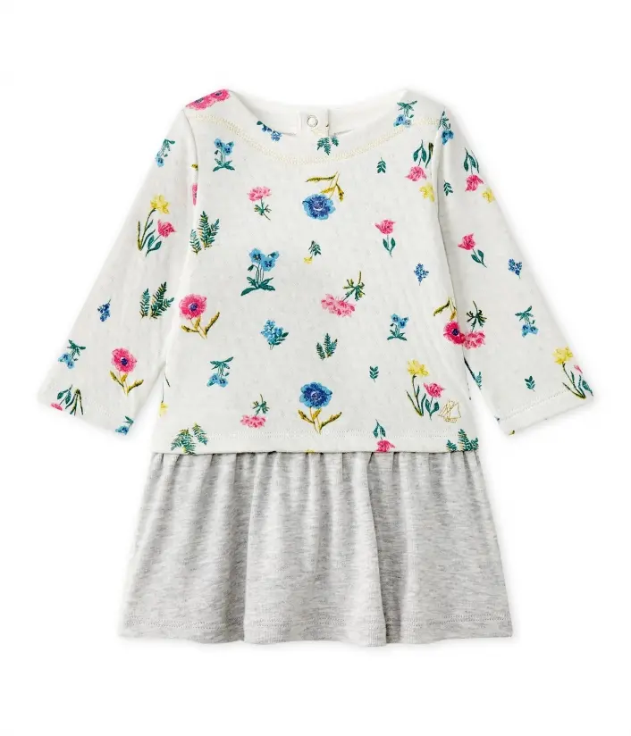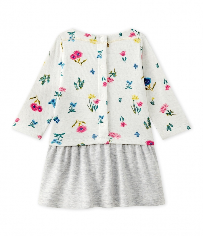 Сукня для дівчинки з довгими рукавами. Вона виготовлена з подвійного трикотажу, має зручні застібки на спині. Прикрашена квітками. Склад: 100% бавовна.