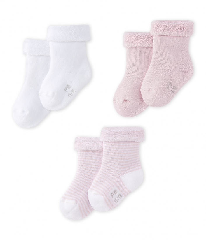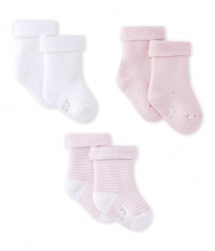 Цей набір з трьох пар дитячих шкарпеток виготовлений з м’якого бавовняного трикотажу. На підйомі стопи розміщений логотип "PB" з відповідним розміром. Тендітну ніжку дитини не будуть давити шкарпетки, адже вони без резинки. Склад: 92% бавовна, 7% поліамід, 1% еластан