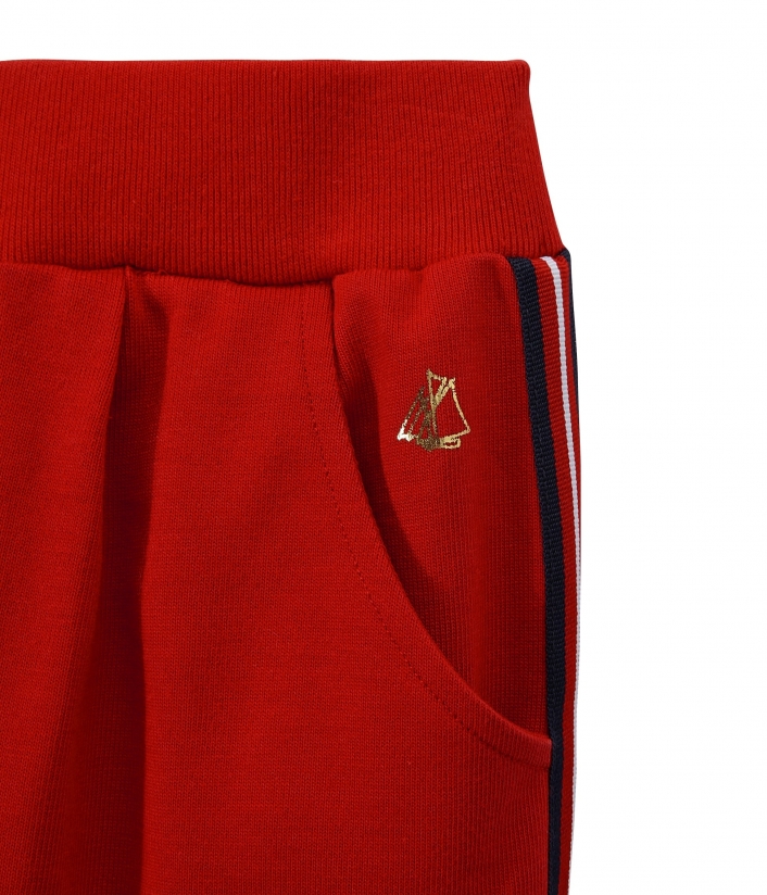 Брюки украшены стильными лампасами и золотистым логотипом Petit Bateau. Состав: 100% хлопок.