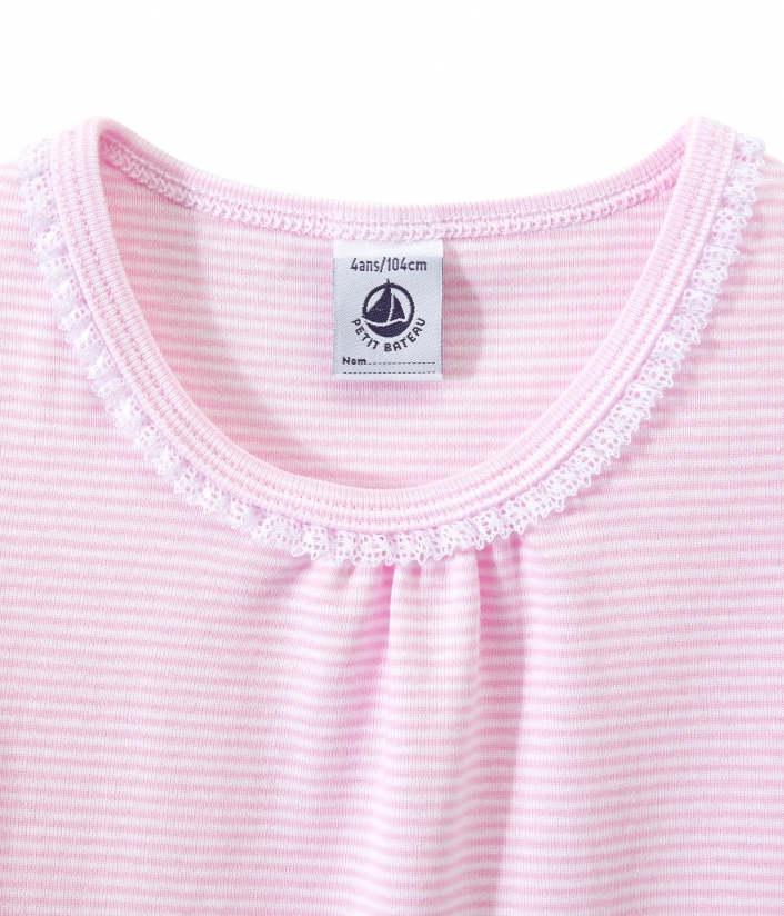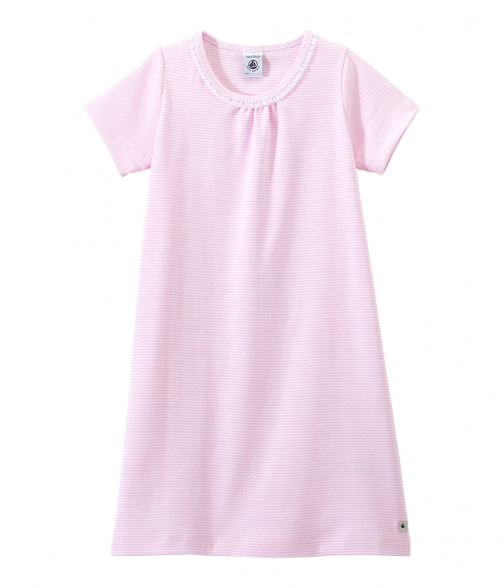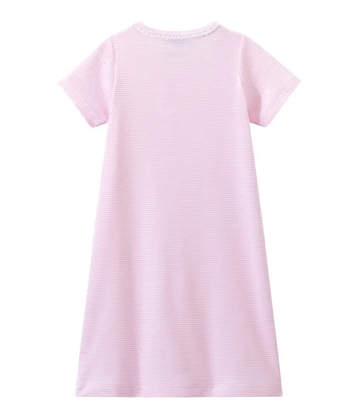Нічна сорочка з короткими рукавами в рожево-білу смужку. Склад: 100% бавовна.