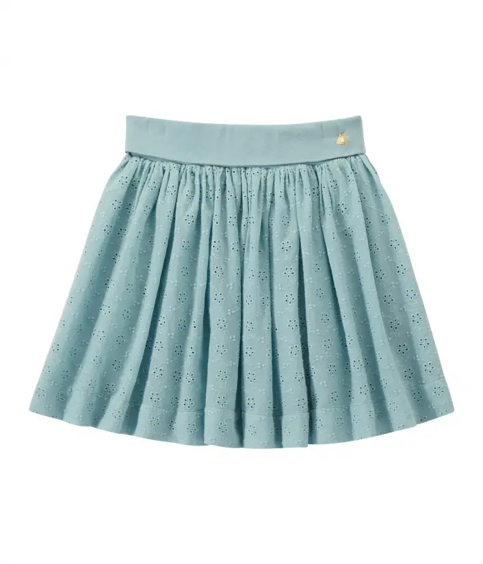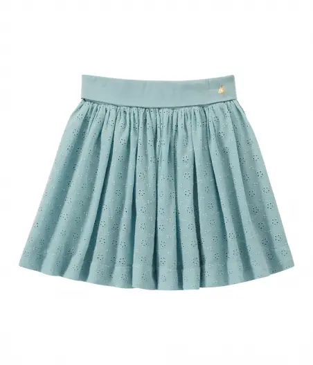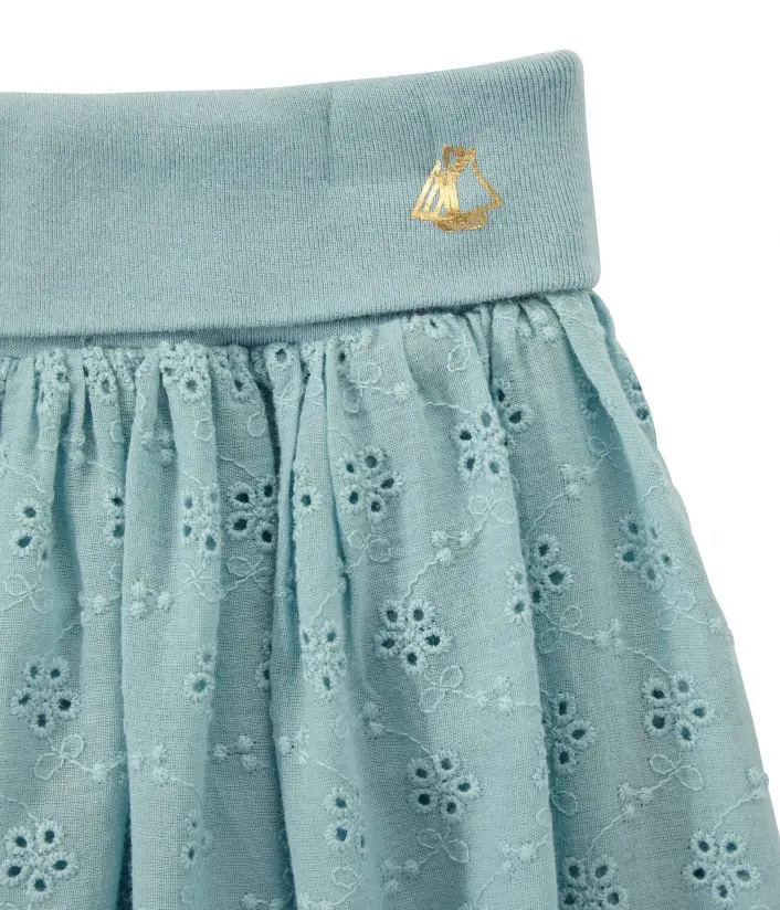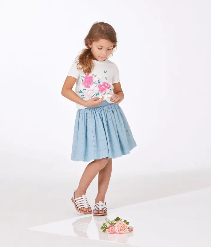 Юбка из 100% хлопка украшена вышитыми цветочками. Имеет эластичный пояс и декорирована традиционным парусником Petit Bateau.