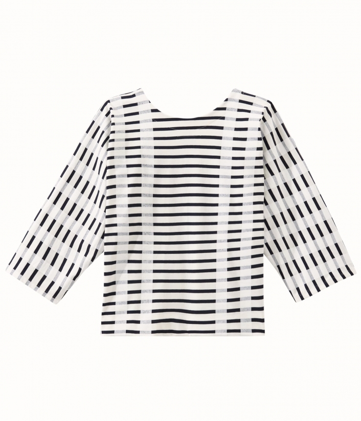 Смугаста жіноча футболка з довгими рукавами Перегляд