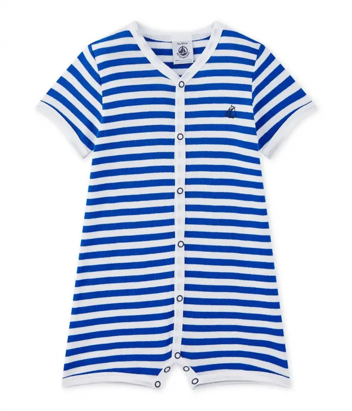 Комбінезон для хлопчика з традиційним зображенням вітрильника. Ідеально підходить для літа. Склад: 100% бавовна.