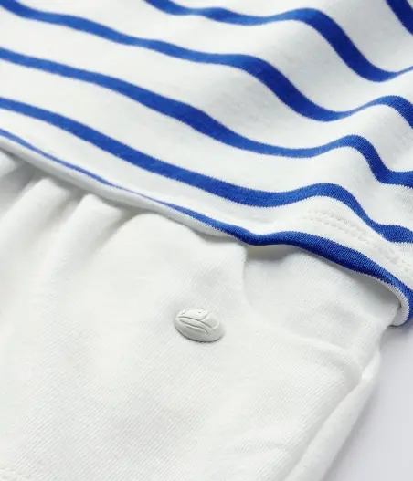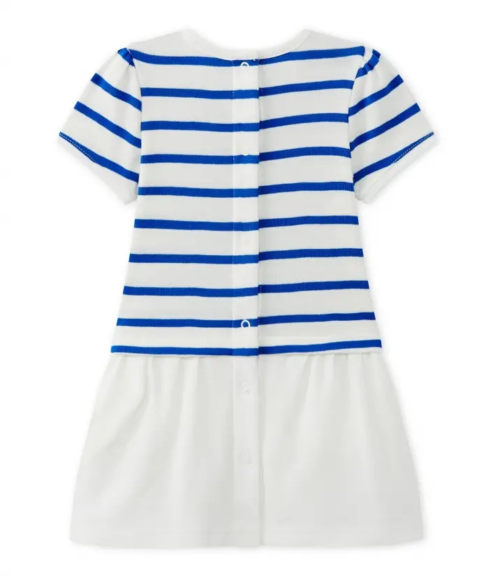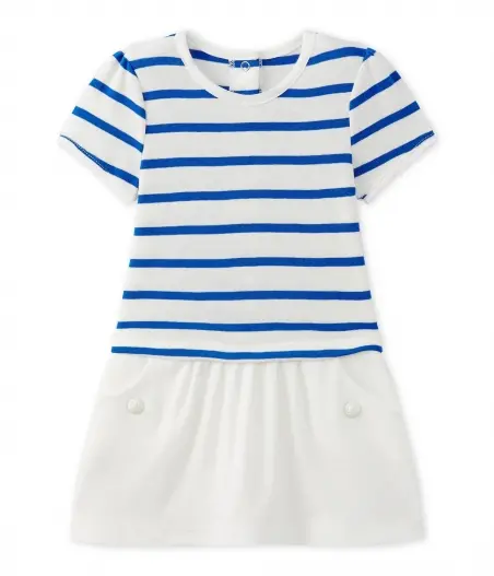 Сукня із заниженою талією. Бокові кишені декоровані елегантними кнопочками з логотипом Petit Bateau. Склад: 100% бавовна.