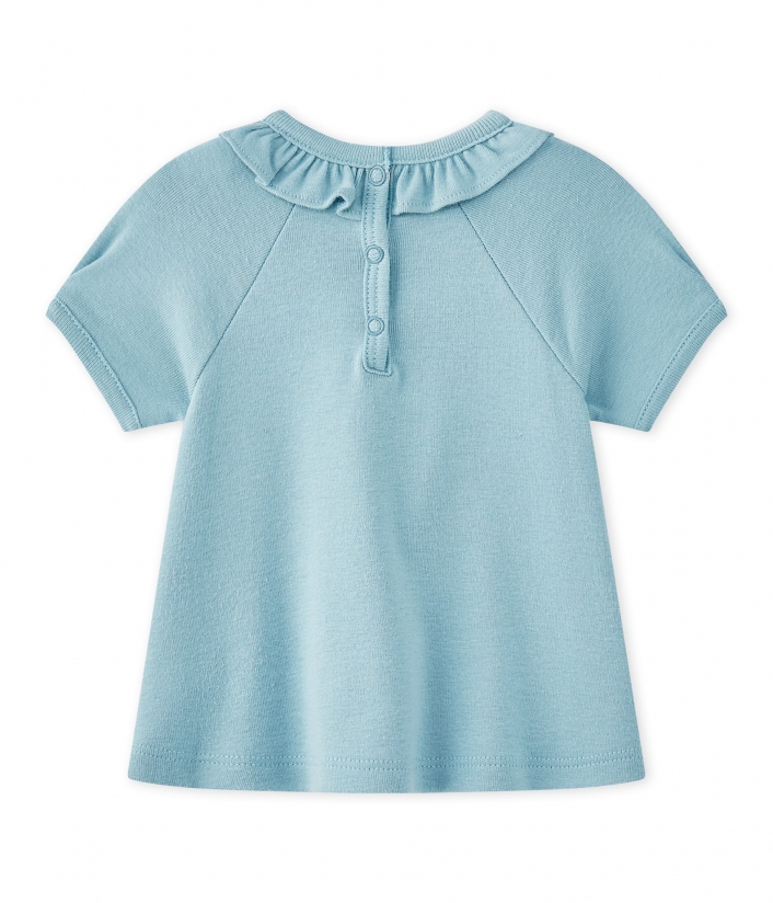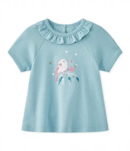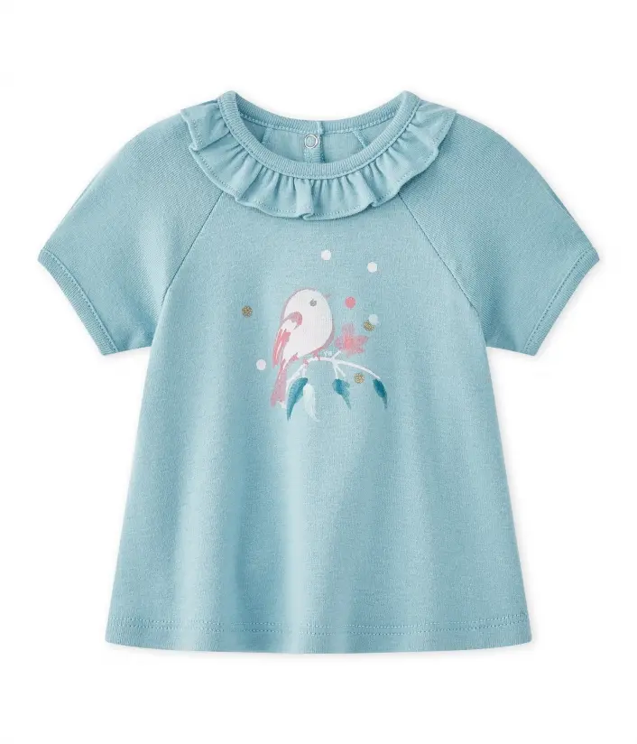 Футболка прикрашена чарівним комірцем та стильним малюнком, має зручні застібки. Ідеальна футболка для літа. Склад: 100% бавовна.