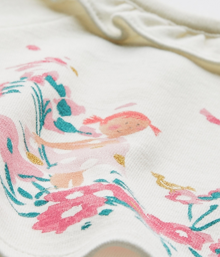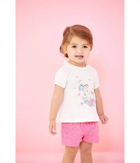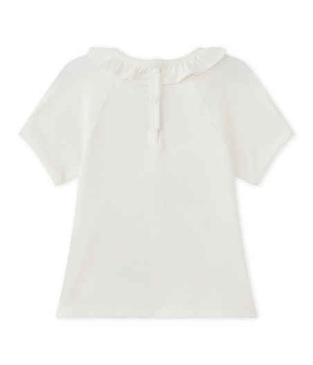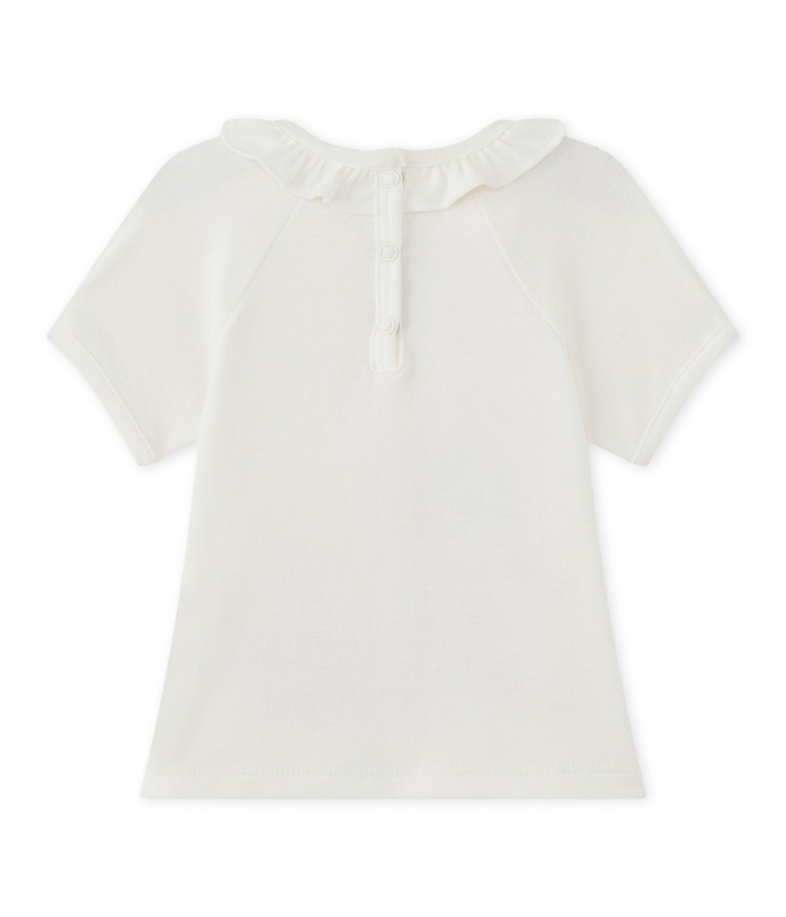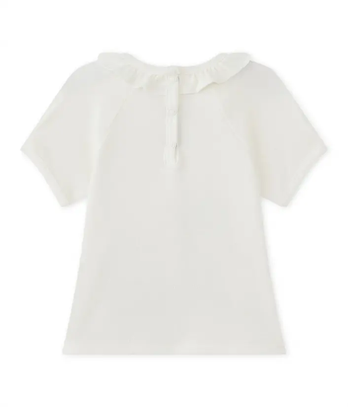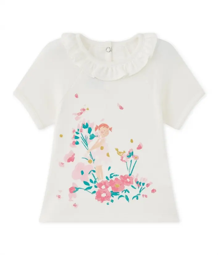 Футболка прикрашена чарівним комірцем та стильним малюнком, має зручні застібки. Ідеальна футболка для літа. Склад: 100% бавовна.