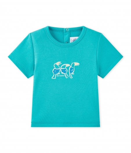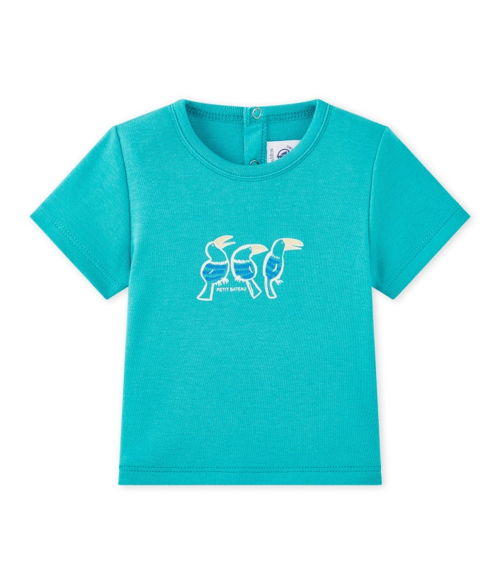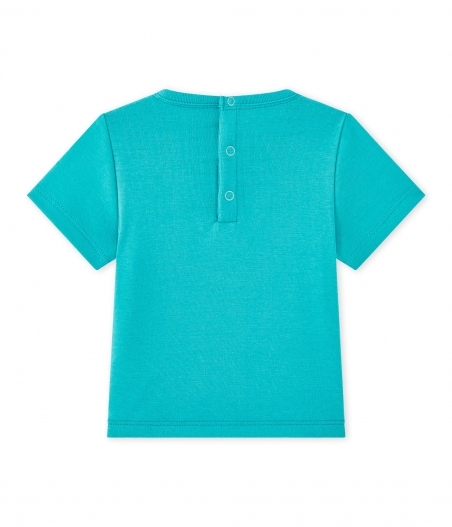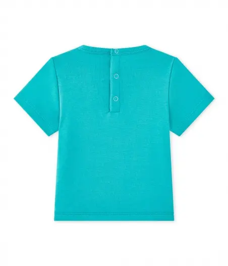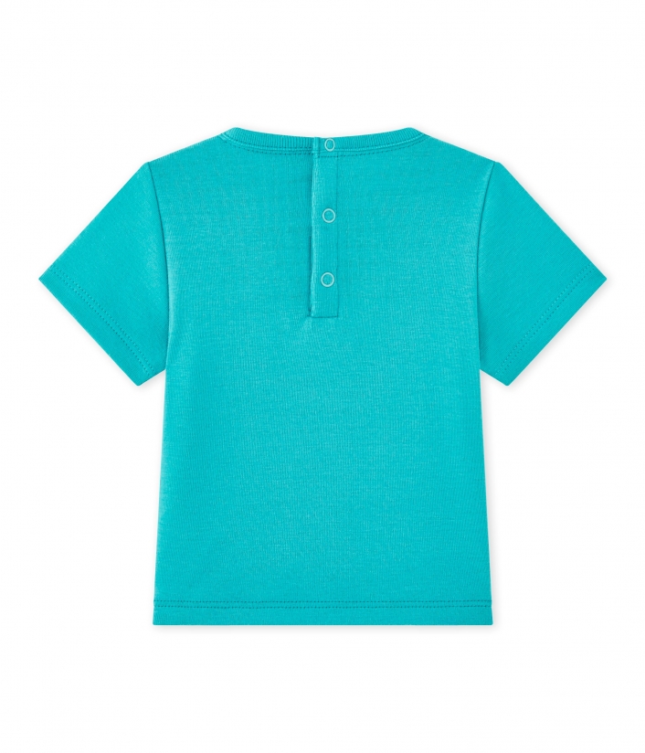 Бавовняна футболка має застібку на кнопки для зручного одягання. Склад: 100% бавовна.