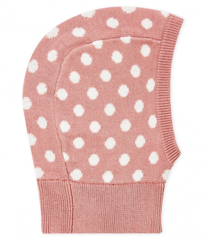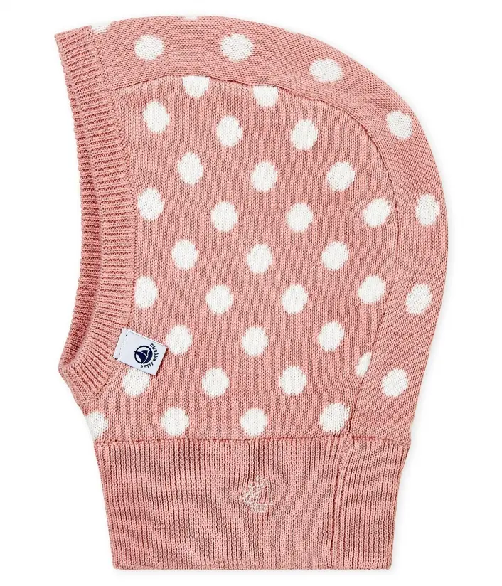 Дитяча балаклава у горошок для дівчинки доречна взимку. Саме цей головний убір захистить обличчя, голову, лоб дитини від холоду та вітру. Трикотажна балаклава має подвійну в'язку, що робить її дуже теплою. Особливого шарму надає традиційний вітрильник Petit Bateau. Саме цей акцент відрізняє виріб серед інших та робить його таким знаковим. Обідок: 3/6м = 43см / 12/18м = 47см / 24/36м = 49см. Склад: 100% бавовна