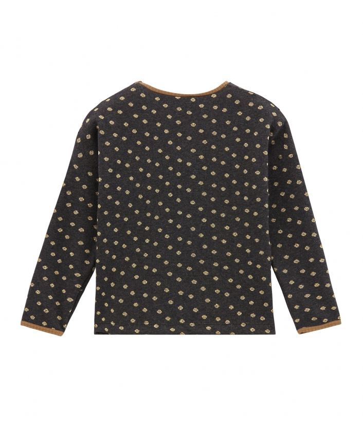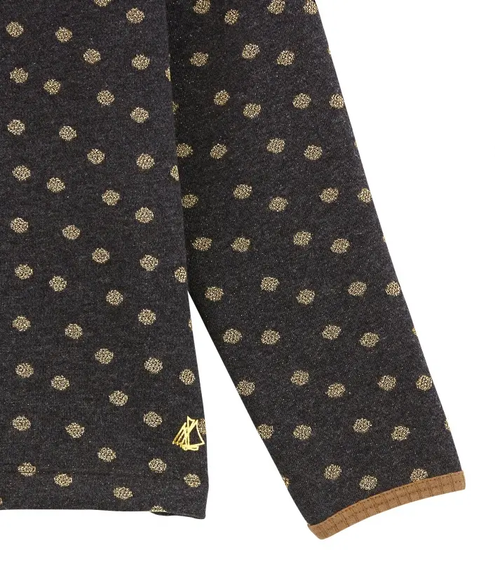 Элегантная блуза в золотистый горошек, несомненно, понравится девочке. Ведь она так мило выглядит. Пошита из интерлока (особый вид двойного трикотажа), который отличается мягкостью и гладкостью. Контрастная окантовка блузы выделяет все ее преимущества. Золотистый парусник Petit Bateau является знаковым. Девочка будет стильно выглядеть в этой очаровательной блузке. Состав: 86% хлопок, 7% полиамид, 7% полиэстер