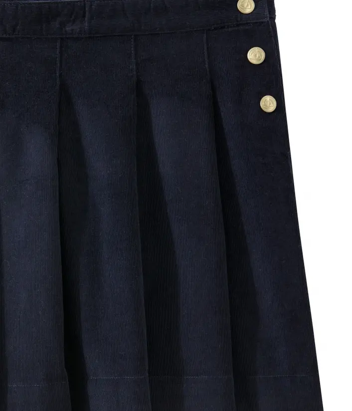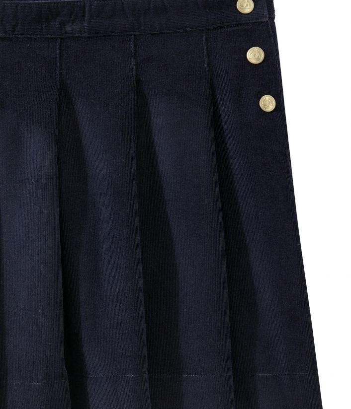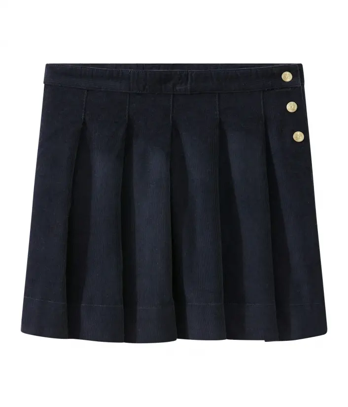 Тренд сезону - плісирована спідниця. Вона пошита з вельвету та декорована золотистими ґудзиками з емблемою Petit Bateau. Ця кежуал, та в той же час елегантна спідниця, впевнені, знайде місце у гардеробі кожної дівчини. Склад: 100% бавовна