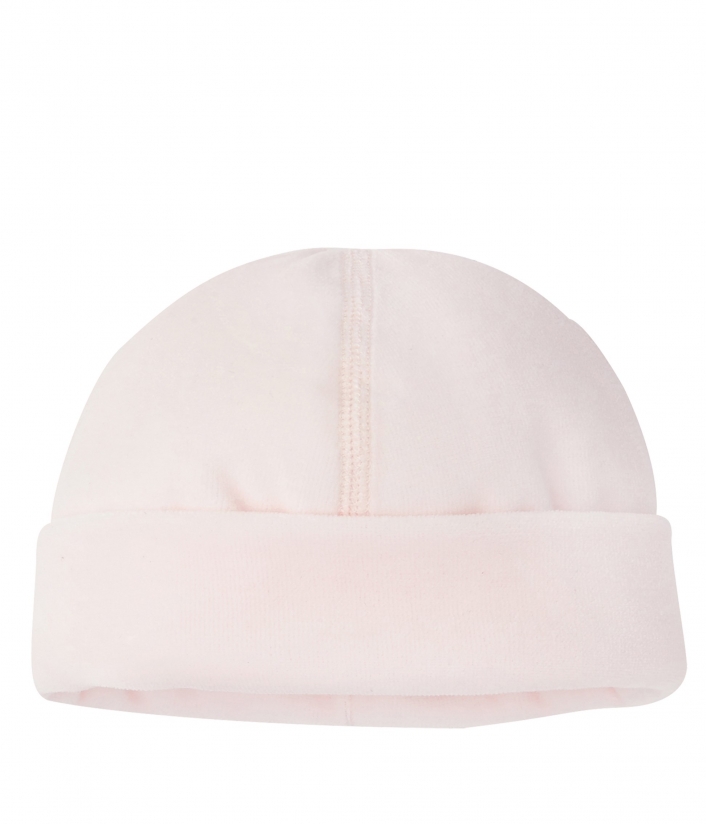 Ця шапочка для дівчинки зроблена з неймовірно м'якого велюру. В цій шапочці Вашій малечі буде тепло та комфортно. Ідеальний варіант для подарунку. Матеріал: 80% бавовна, 20% поліестер.