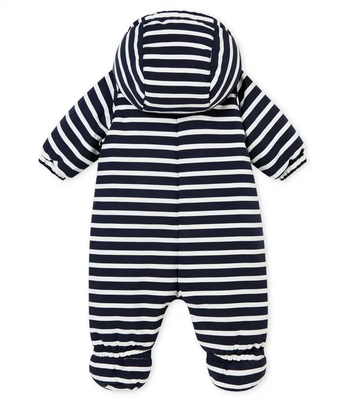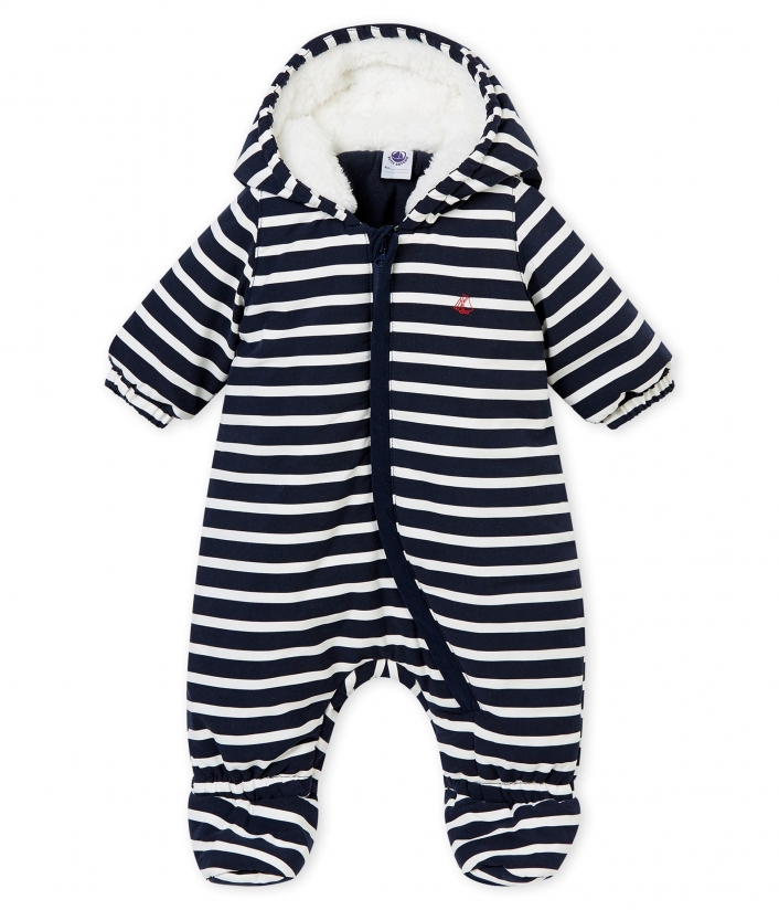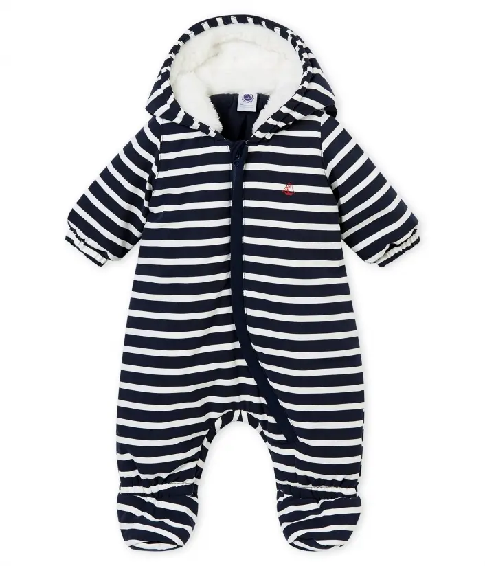 Цей теплий зимній комбінезон чудово підходить для прогулянок та захистить від снігу. Він пошитий з мікрофібри зі смужками. Підкладка з мікрофлісу та вставка зі штучного хутра на капюшоні мають термоізоляційні властивості, тому дитині буде дуже тепло та комфортно. Прихована застібка на блискавку дозволить легко перевдягати малюка. Вишитий вітрильник Petit Bateau додає особливого шарму комбінезону. Склад: 100% поліестер/ 100% бавовна / 100% поліестер / 100% поліамід / 100% поліестер
