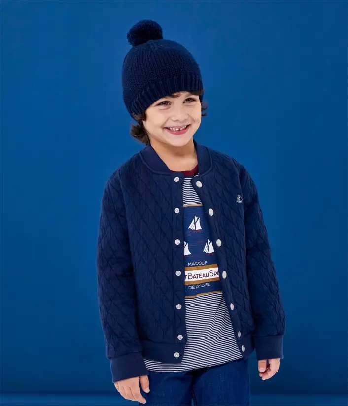 Стильний та теплий кардиган із центральною застібкою на кнопки з логотипом Petit Bateau, з V-подібним вирізом горловини, з вишивкою вітрильника Petit Bateau. Маст-хев (обов'язковий) в гардеробі хлопця. Склад:75% бавовна, 25% поліетилен/ 97% бавовна, 3% еластан