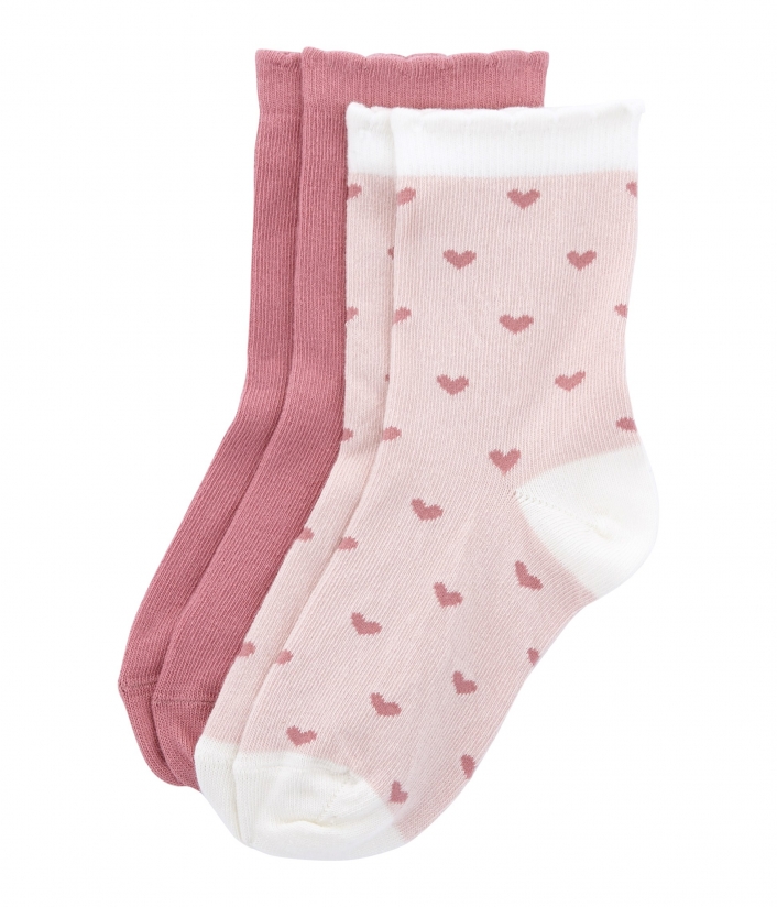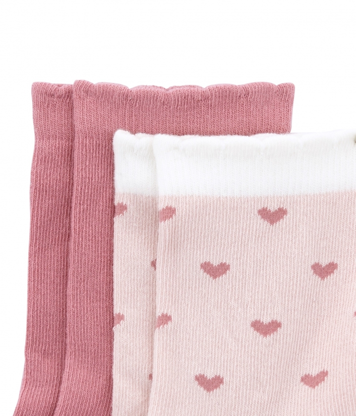 В наборе носки однотонного розового цвета, с принтом сердечек и контрастными белыми вставками. Длина стопы: 23/26 = 14,6-16,1 см; 27/30 = 17,2-18 см; 31/34 = 19,6-21,3 см; 35/38 = 22,8-23, 8 см. Состав: 85% хлопок, 12% полиамид, 2% эластан / 85% хлопок, 13% полиамид, 2% эластан