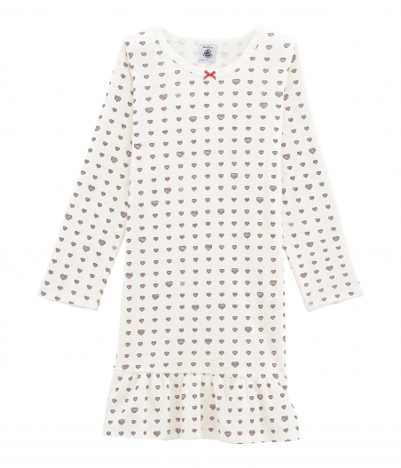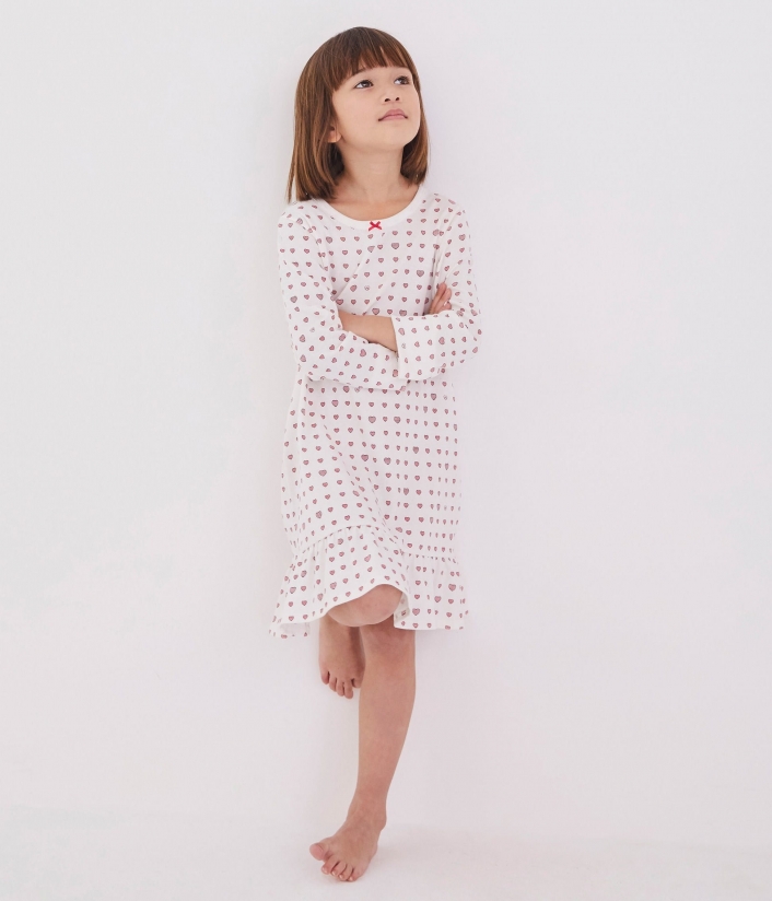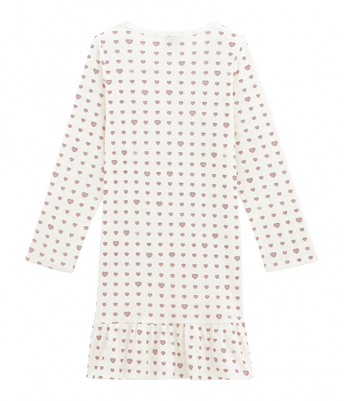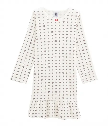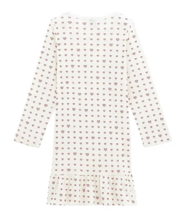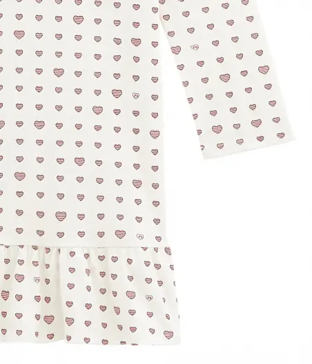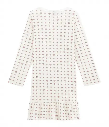 Нічна сорочка молочного кольору прикрашена сердечками та чарівними воланами знизу. OEKO-TEX® гарантує безпечність для шкіри. Склад: 100% унікальна бавовна