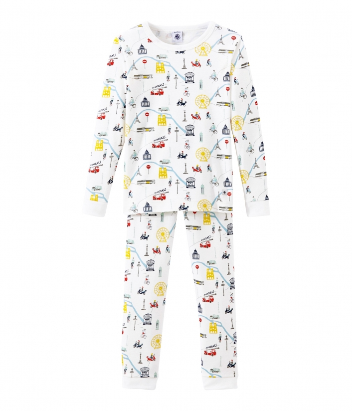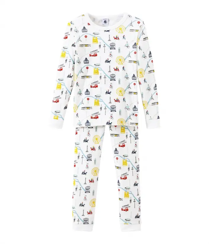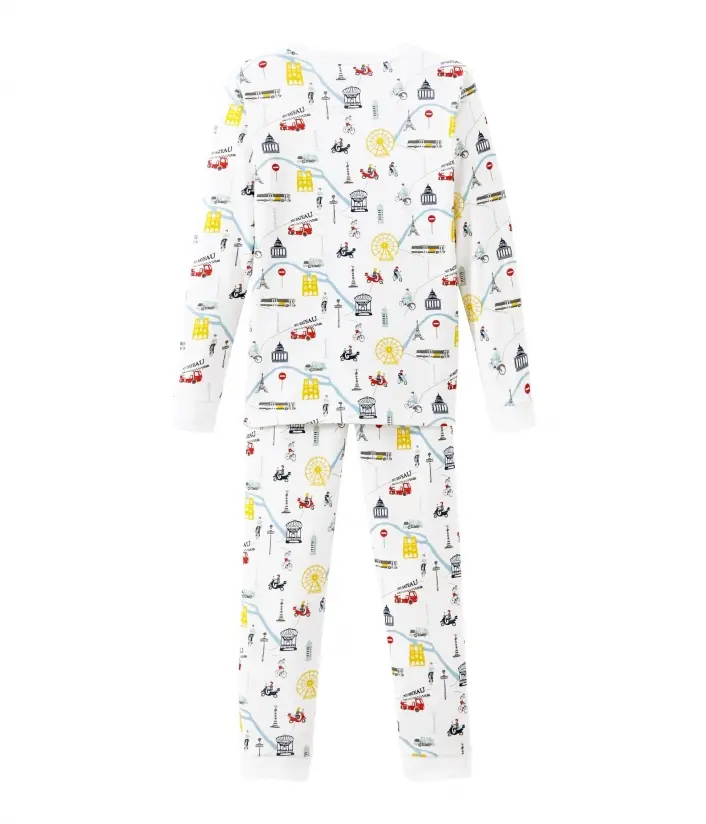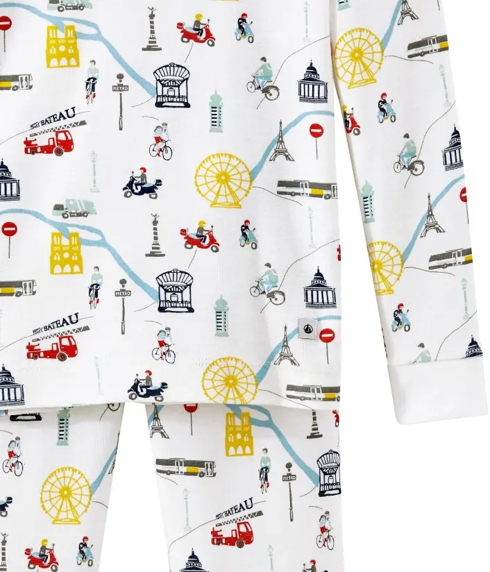 Піжама для хлопчика з принтом дивовижного паризького колориту. Вона м'яка та комфортна, приємно прилягає до шкіри. Рукава футболки та брюки з манжетами. OEKO-TEX® гарантує безпечність для шкіри. Склад: 100% унікальна бавовна