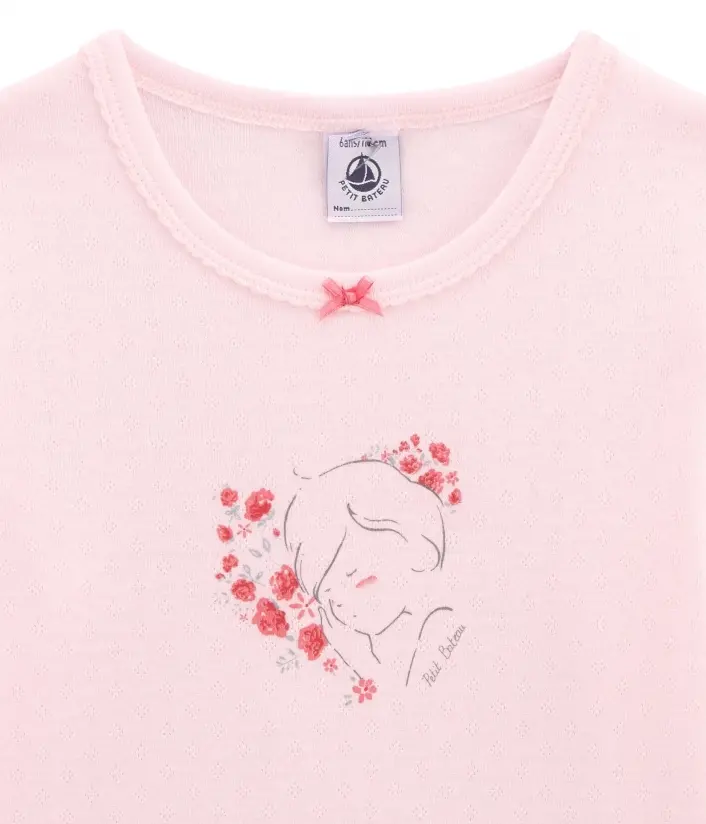 Мила рожева піжама з принтом сплячої дівчинки, яка насолоджується трояндами у сні. Брюки усіяні принтом троянд. Надзвичайно ніжна піжама для чарівних дівчаток. Вона прикрашена маленьких бантиком на комірці. Рукава футболки та брюки з манжетами. Комфортна, стильна та неймовірно м'яка піжама для холодного сезону. OEKO-TEX® гарантує безпечність для шкіри. Склад: 100% унікальна бавовна