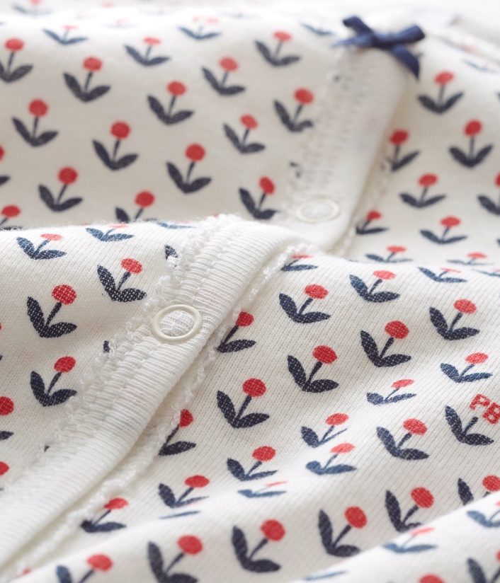 Чарівна піжама з квітковим принтом. Милий бантик прикрашає її. Застібки на кнопочки для зручнішого перевдягання. OEKO-TEX® гарантує безпечність для шкіри. Склад: 100% унікальна бавовна