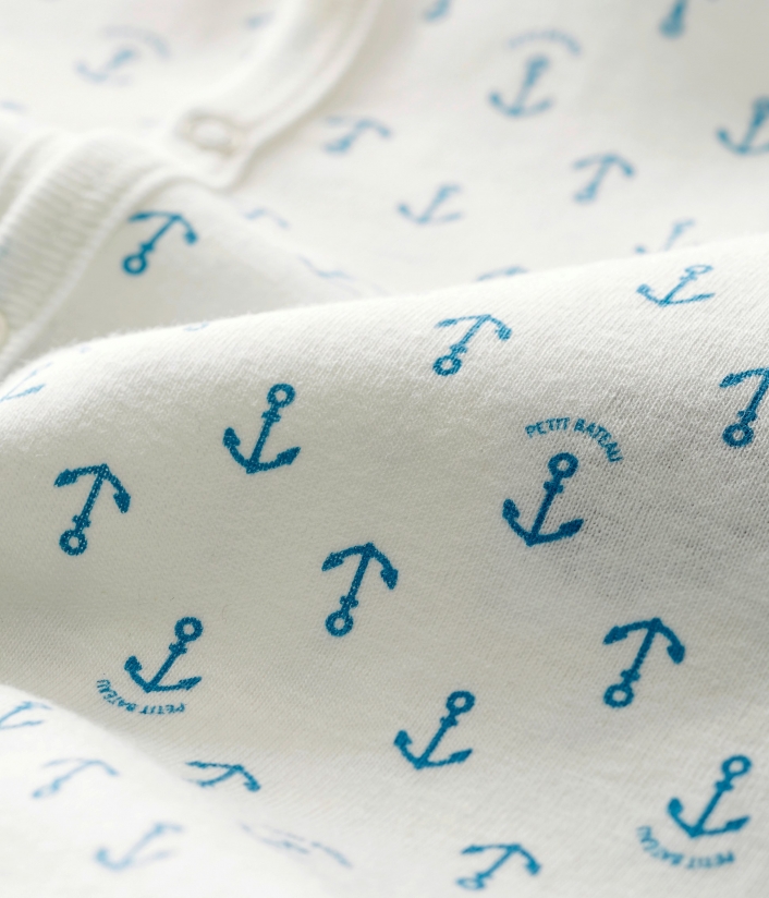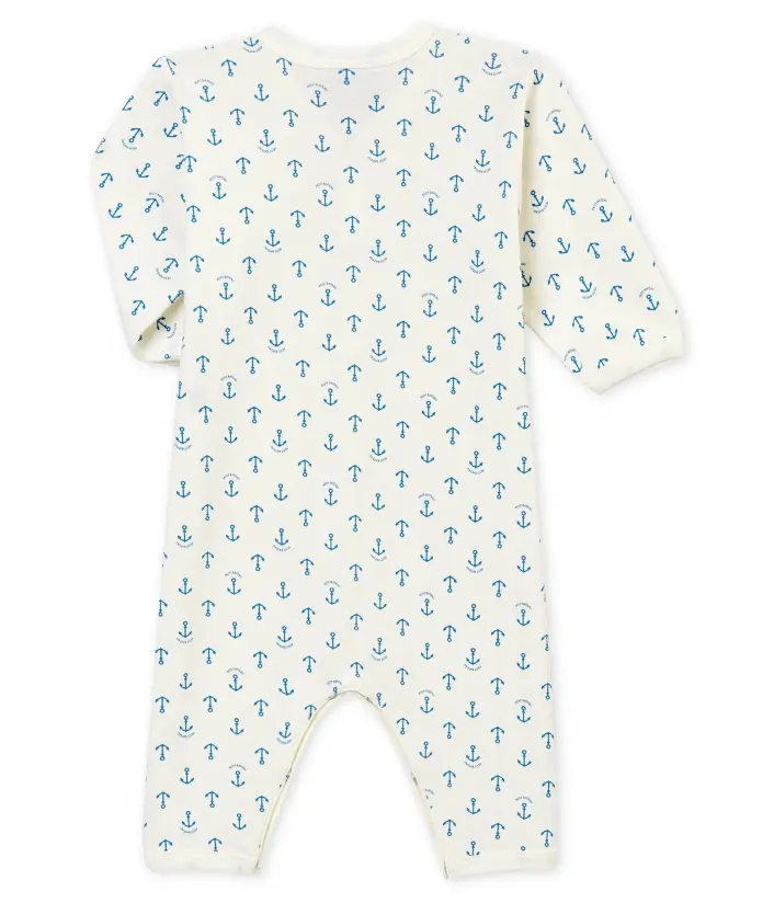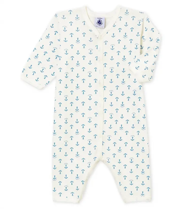 Белая пижама с принтом якорей. Застежки на кнопочки для удобного переодевания. OEKO-TEX® гарантирует безопасность для кожи. Состав: 100% уникальный хлопок
