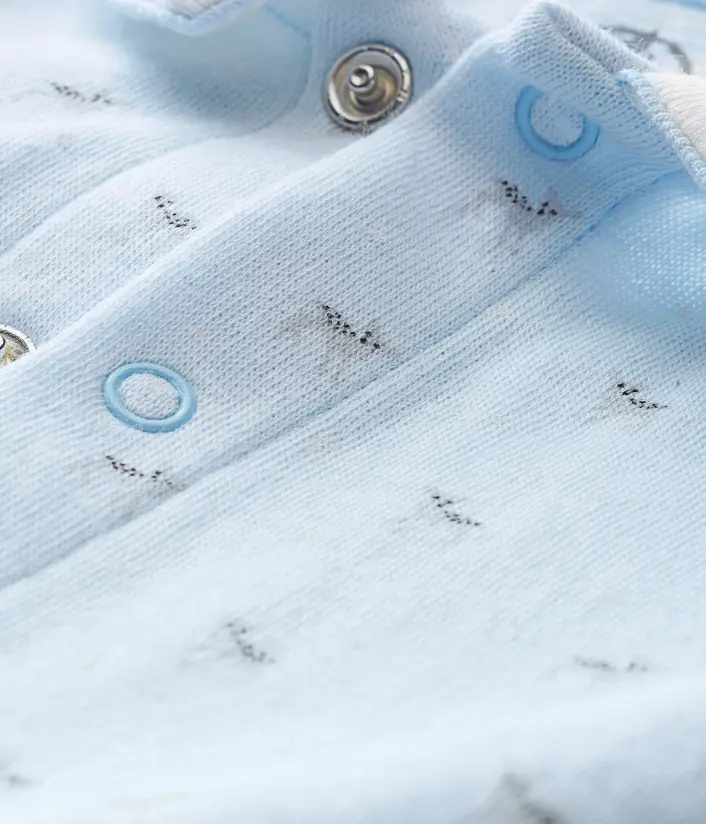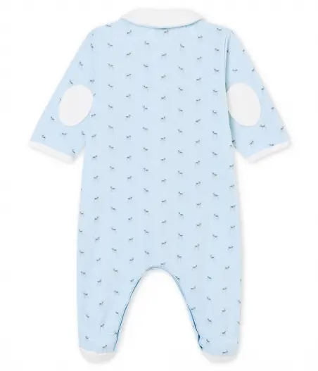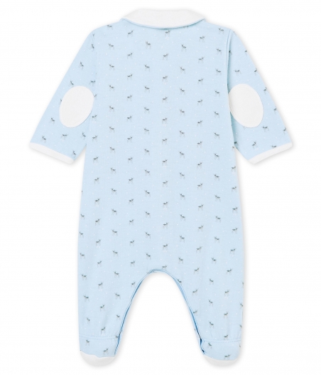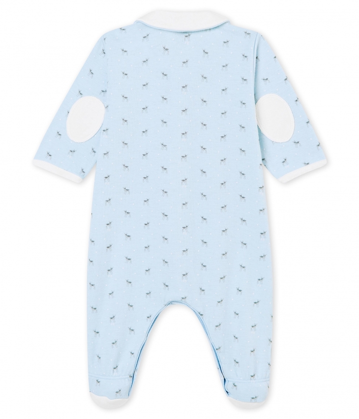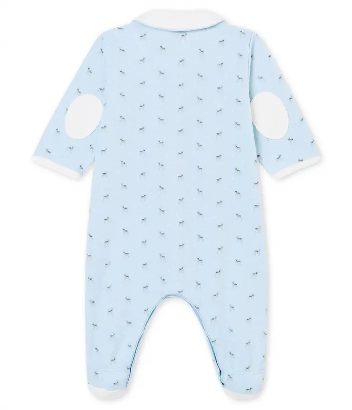 Ця чарівна піжама для хлопчика зігріє взимку. Такий ніжний небесно-блакитний колір бавовни з принтом оленів виглядає приголомшливо. Піжама виготовлена з м'якої бавовни, попліну на ступнях. Вона має контрастну білу вставку на ліктях. Комір дуже мило виглядає та доповняє піжамку. Зручні застібки на кнопочки полегшують перевдягання. OEKO-TEX® гарантує безпечність для шкіри. Склад: 100% унікальна бавовна
