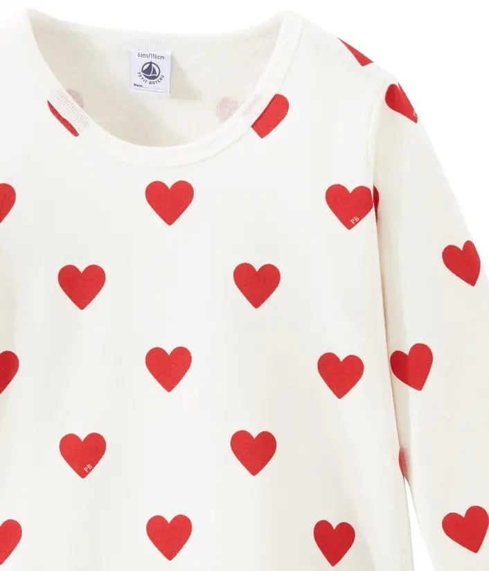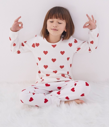 Піжама прикрашена сердечками. Рукава футболки та брюки з манжетами. OEKO-TEX® гарантує безпечність для шкіри. Склад: 100% унікальна бавовна