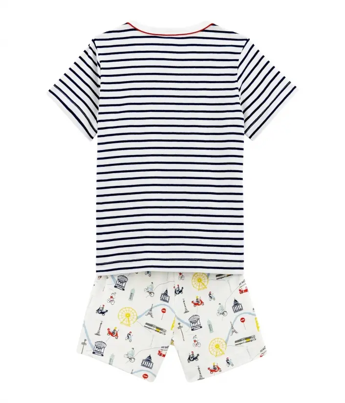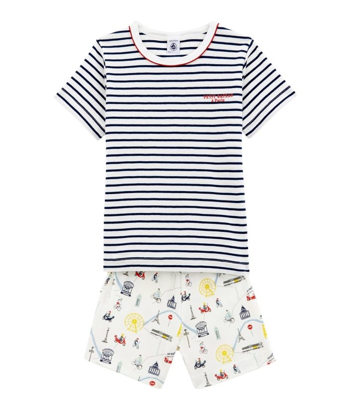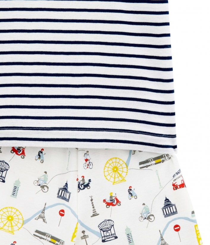 Піжама "Париж" для шанувальників одного з найкрасивіших міст світу - Парижу. Футболка прикрашена смужками та емблемою Petit Bateau. Контрастності додає червона лінія на горловині. OEKO-TEX® гарантує безпечність для шкіри. Склад: 100% унікальна бавовна