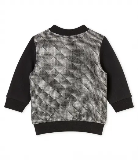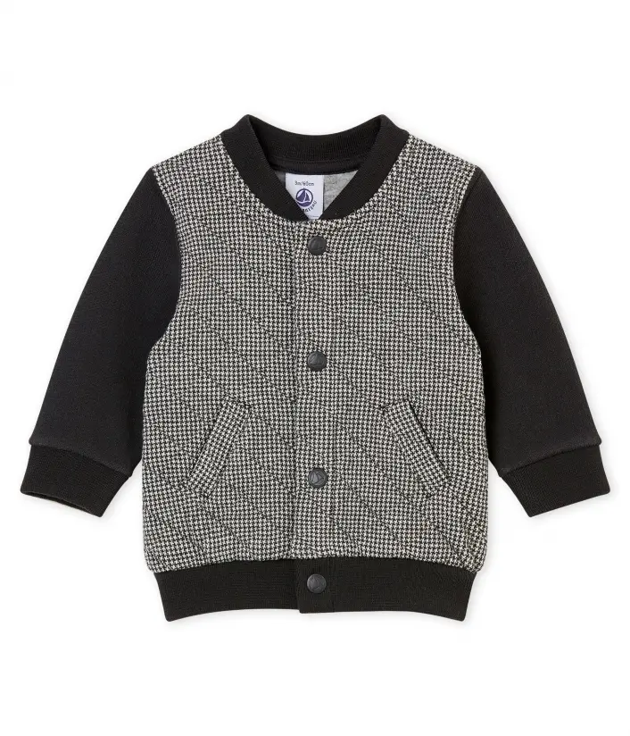 Стильний кардиган із центральною застібкою на кнопки з логотипом Petit Bateau , з V-подібним вирізом горловини та прорізними кишенями з листочкою. Жакет виповнений в стилі "коледж". Склад: 88% бавовна, 12% поліетилен/ 100% бавовна/ 97% бавовна, 3% еластан