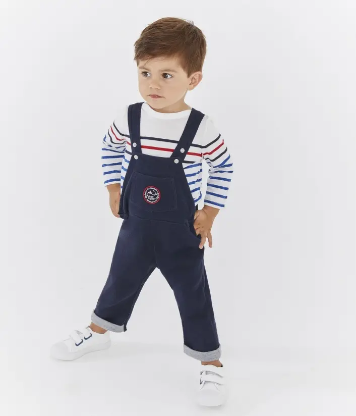 Комбінезон для хлопчиків від Petit Bateau. Він оздоблений стильною аплікацією з китом. Цей модний комбінезон буде ідельно пасувати до всіх футболок з нової колекції. Склад: 96% бавовна 4% поліамід/ 100% бавовна