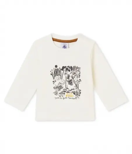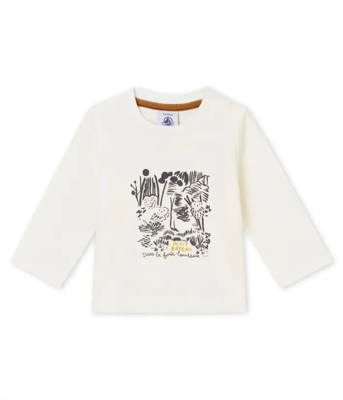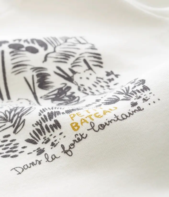 Дитяча футболка з милим принтом. На плечі сбоку має застібки на кнопочки для зручності перевдягання. Склад: 100% бавовна